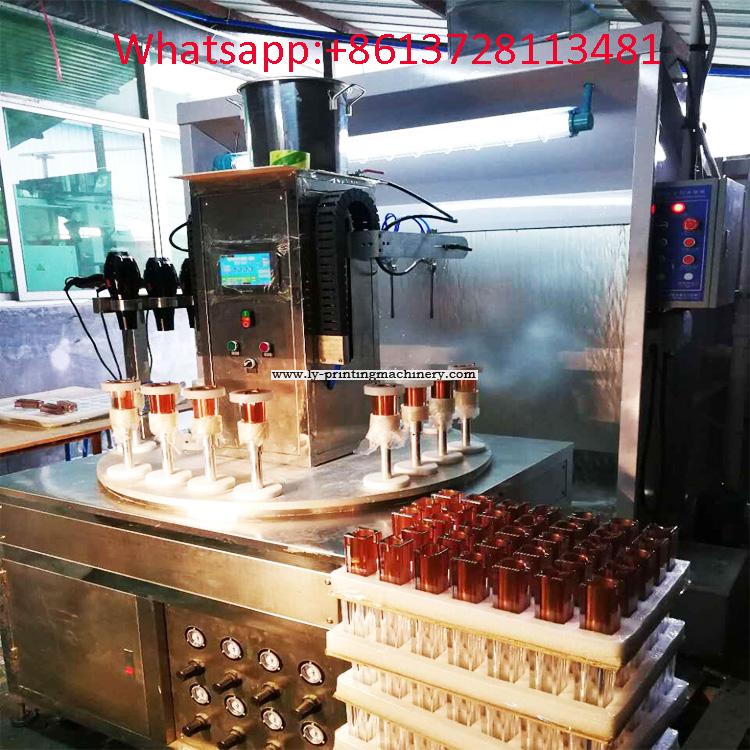 This is a automatic spray painting machine for painting color inside, such as bottle inside, cup inside, container inside, bowl inside ,cylinder insid ETC